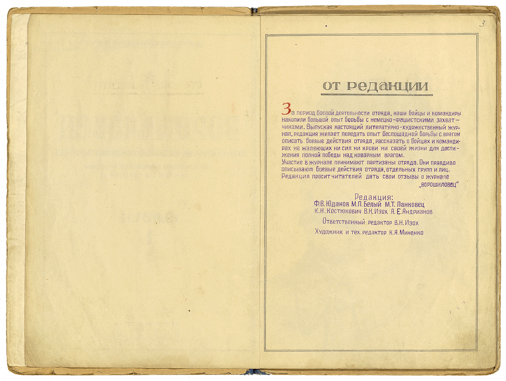 Рукописный журнал №1 «Ворошиловец» партизанского отряда им. Ворошилова бригады им. Щорса, апрель 1944 года