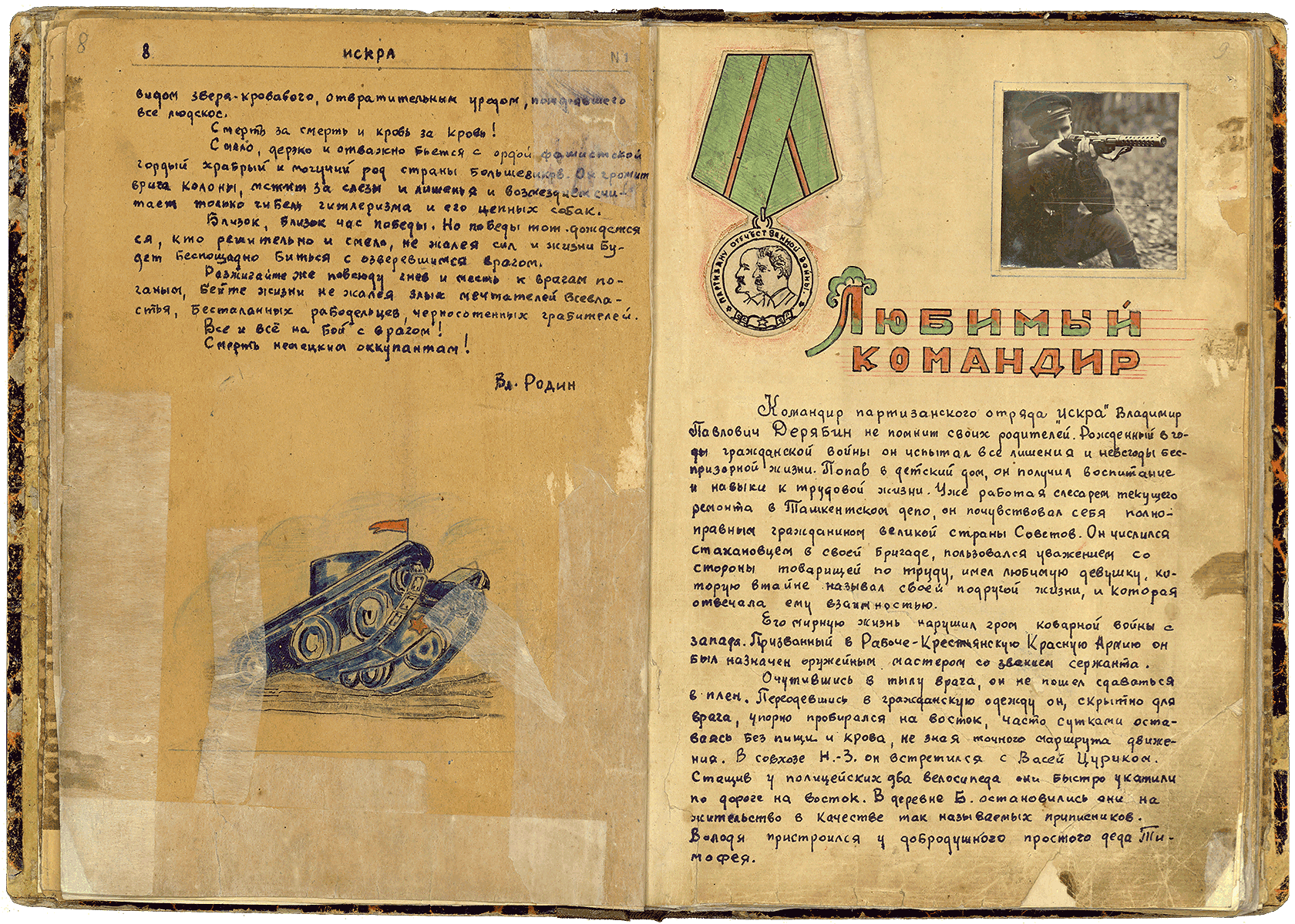 Рукописные партизанские журналы хранили с важными документами и старательно наполняли фактами вместе с рассказами о быте, сражениях, героях. Самодельные «книги» оживляли рисунками и неизменным юмором. Передавая из рук в руки, их читали для поднятия духа с надеждой на скорую победу.