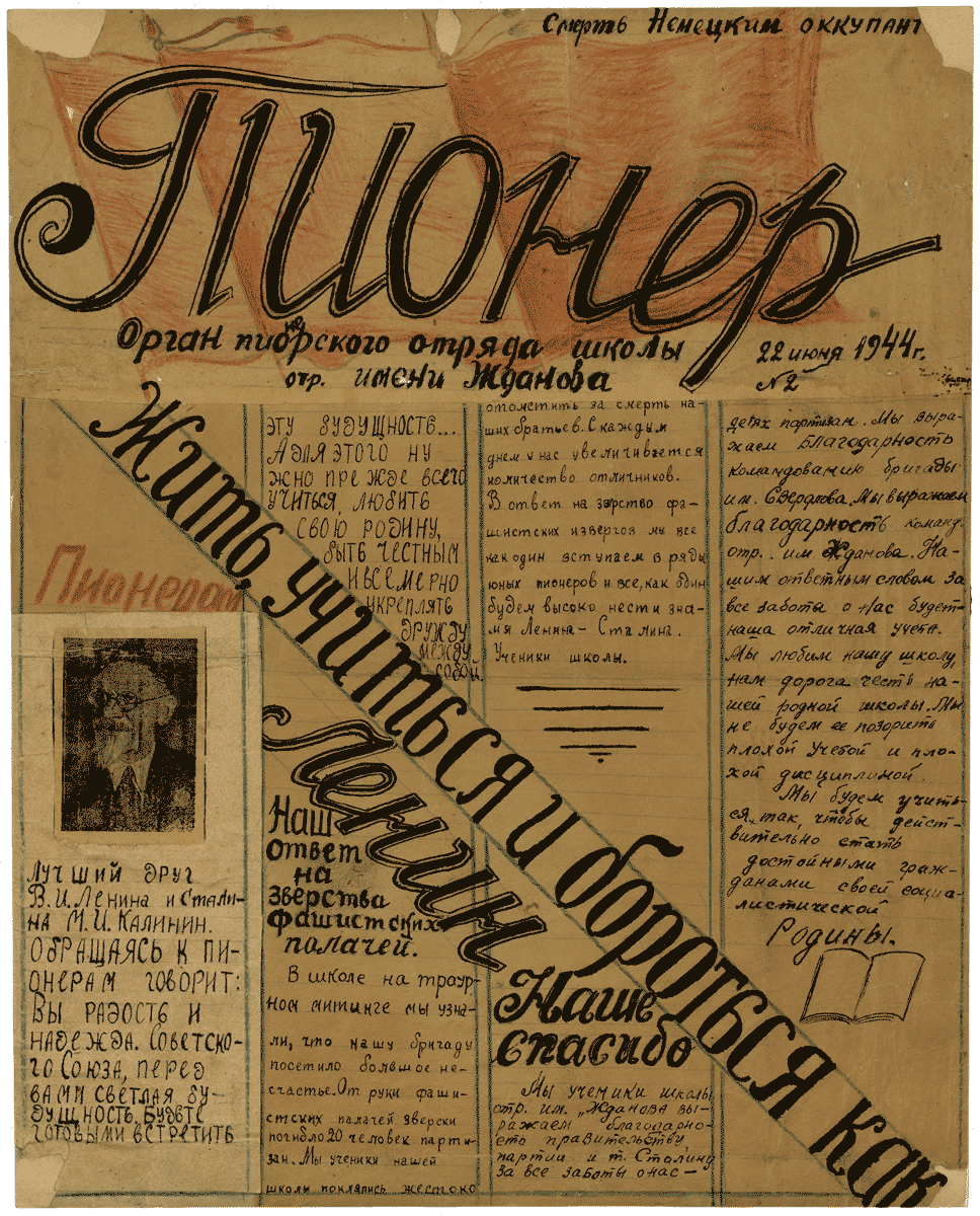 Фрагмент из стенной газеты №2 «Пионер» школы отряда имени Жданова, Брестская область, 1944 год