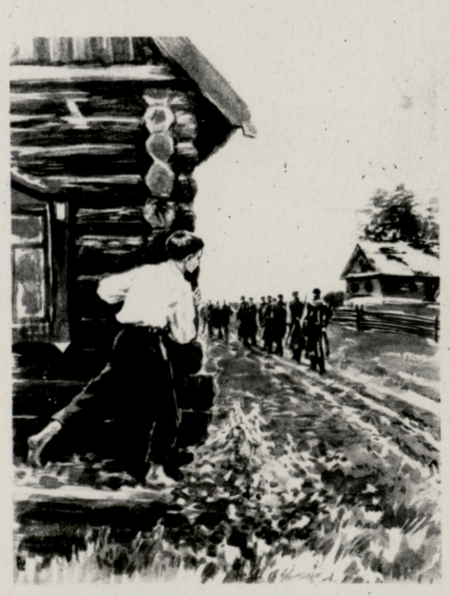 «При отходе наших войск вместе с бойцами Красной Армии малыши в безвыходные минуты прятали оружие и военное имущество. Зачастую ни слова не говорили дома в своей семье или более взрослым товарищам. Дети быстро узнали о каких-то сильных и очень смелых людях, которые живут только в лесах и приходят по ночам в деревни беседовать с населением».