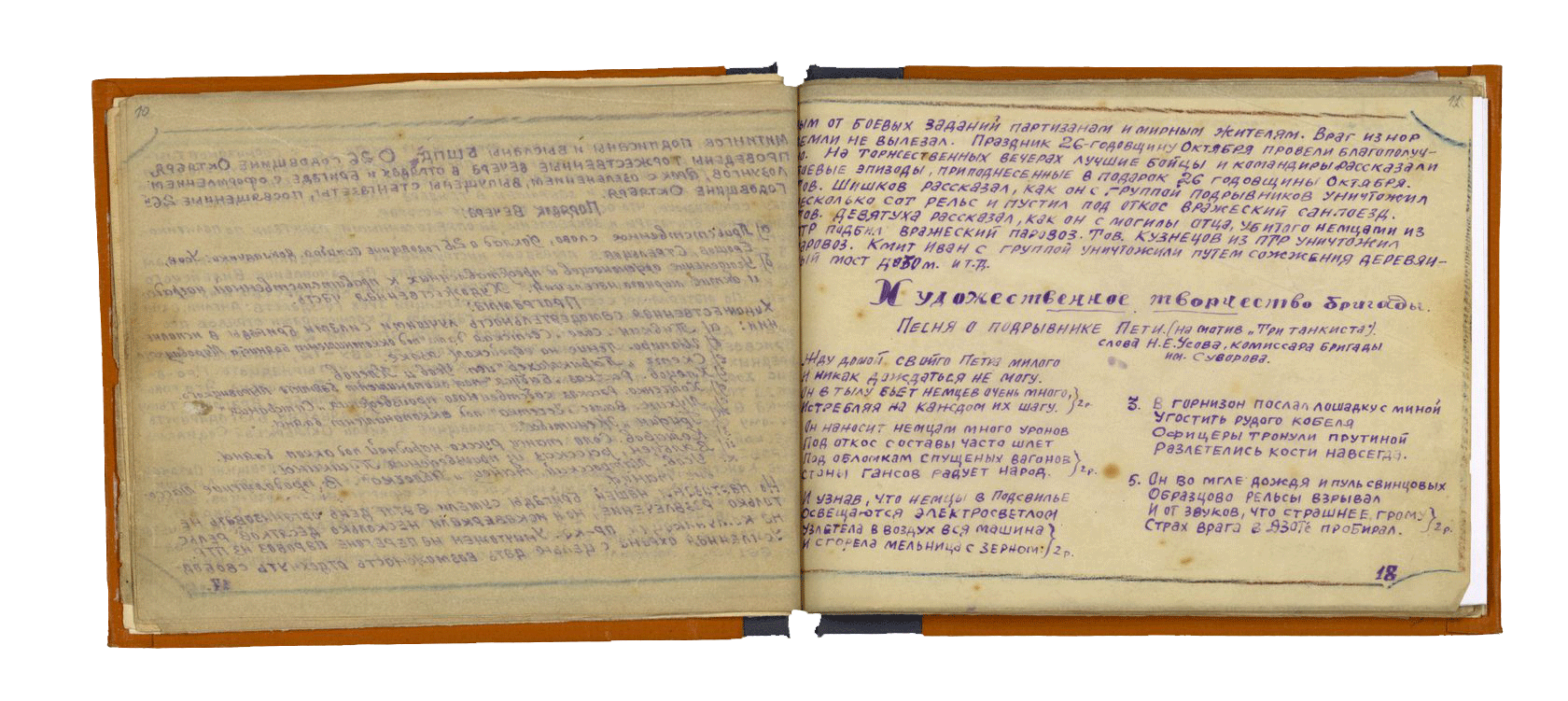 Фрагменты поэмы А.Михайлова «Первая потеря» из рукописного журнала «Народный мститель» бригады имени В.Т.Воронянского, 1944 год