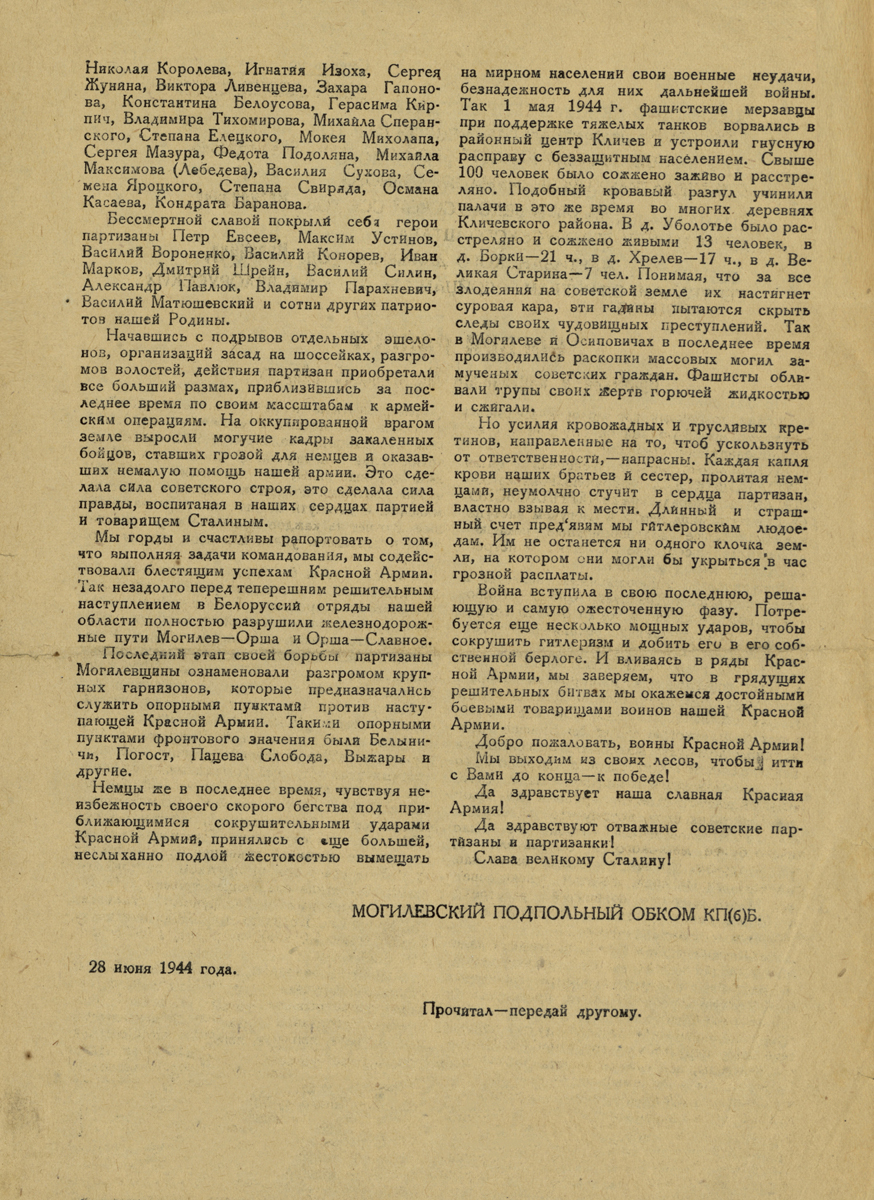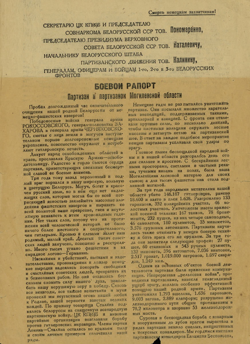 Мы, офицеры, отчаянно стремились догнать армию. Когда поняли, что она далеко, стали думать, как выжить и начать борьбу в тылу врага. Населенные пункты были заняты немцами, но еще не обжиты, там не было администрации, полицейских управлений. В общем, оставался шанс. Так в конце июля 1941 года я очутился в Бобруйске…