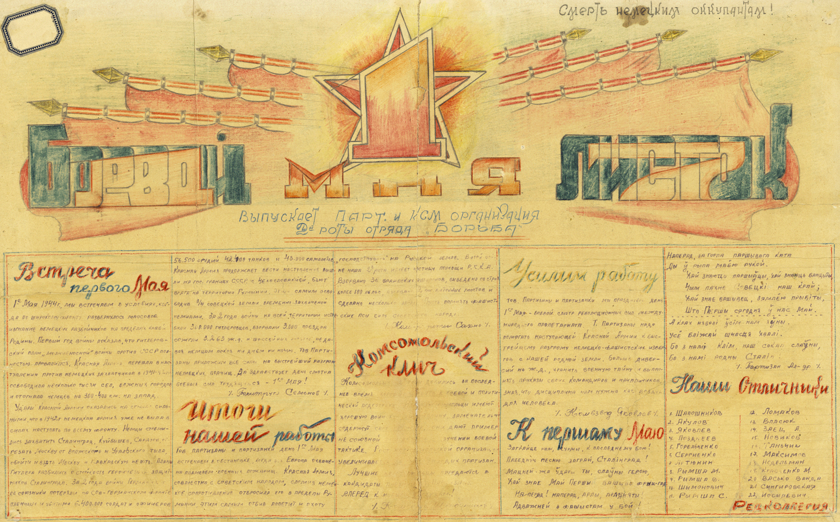 К встрече Первомая в партизанских формированиях и селах объявляли социалистические соревнования. В результате одного из них в Белостокской области до фронта не дошли 47 эшелонов противника. Соцсоревнования были одной из тем праздничных выпусков партизанских листовок, газет и рукописных журналов.