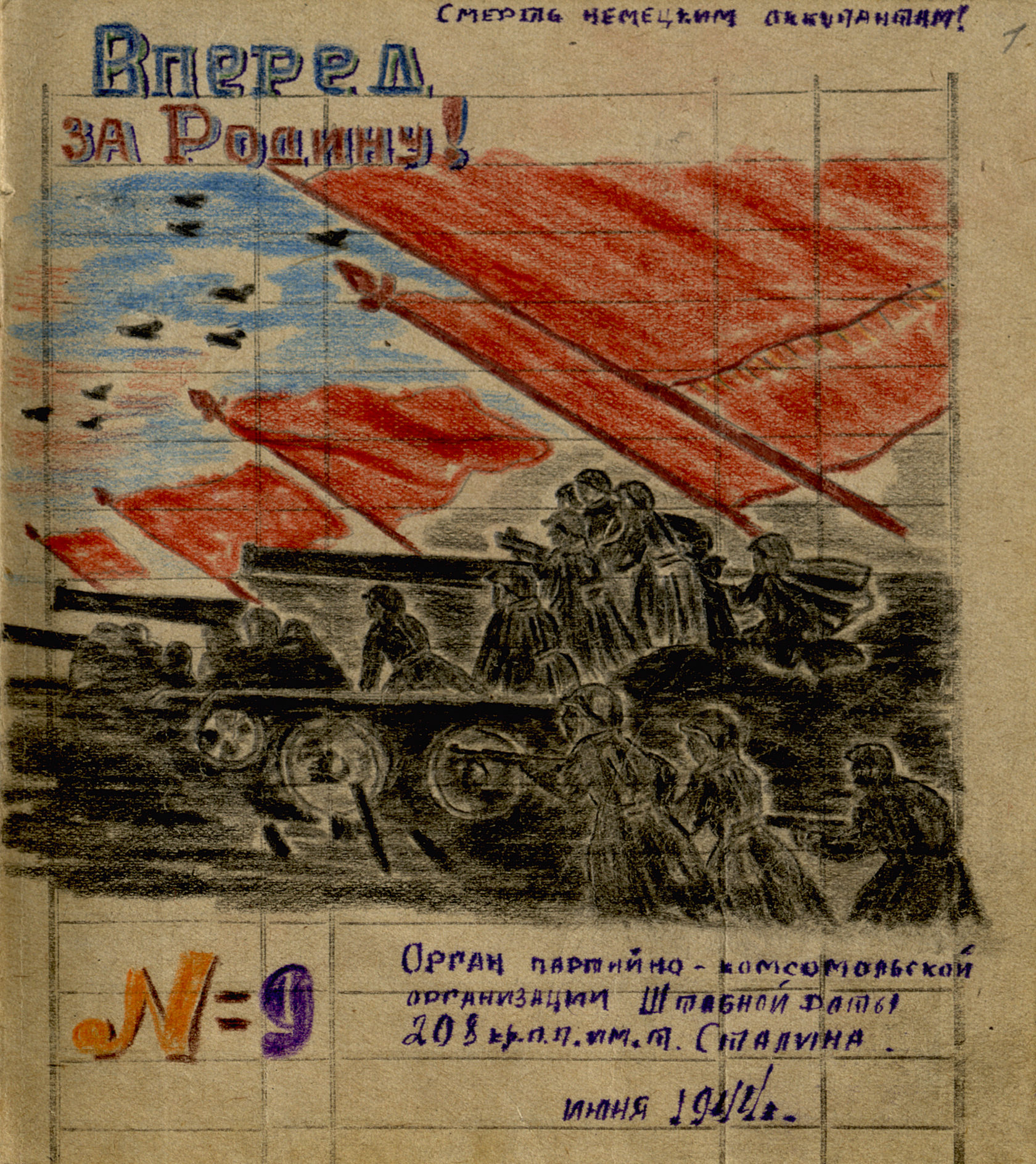 Фрагмент часопіса №9 «Вперёд за Родину» органа партыйна-камсамольскай арганізацыі штабной роты 208-га партызанскага палка імя І.В.Сталіна Магілёўскай вобласці, чэрвень 1944 года