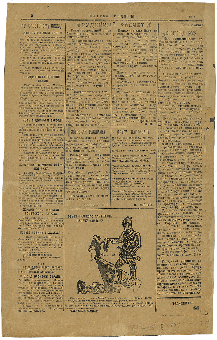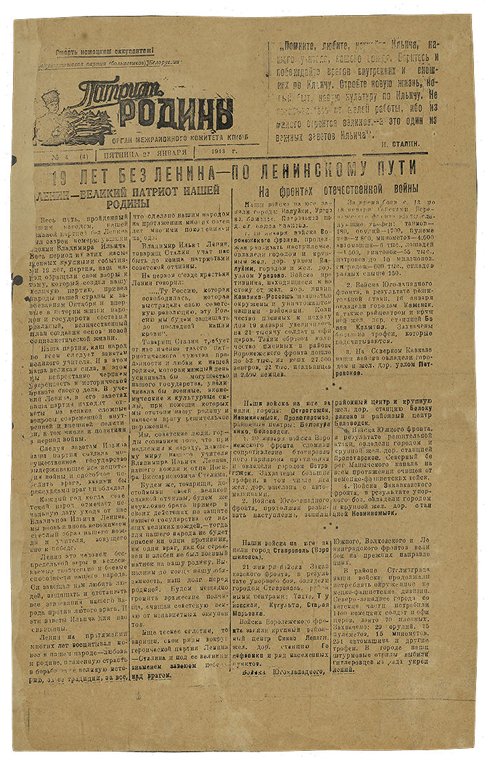 Zeitung „Patriot Rodiny", Presseorgan des Bezirkskomitees der Kommunistischen Partei Belorusslands, 22. Januar 1943