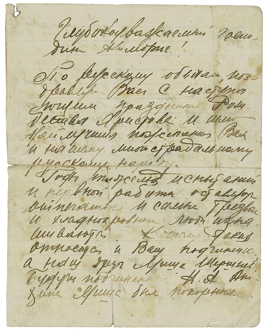 „Verehrter Herr Brigadekommandeur! Nach russischem Brauch gratuliere ich Ihnen zum kommenden Weihnachtsfest und wünsche Ihnen und unserem vielleidenden russischen Volk alles Gute… "