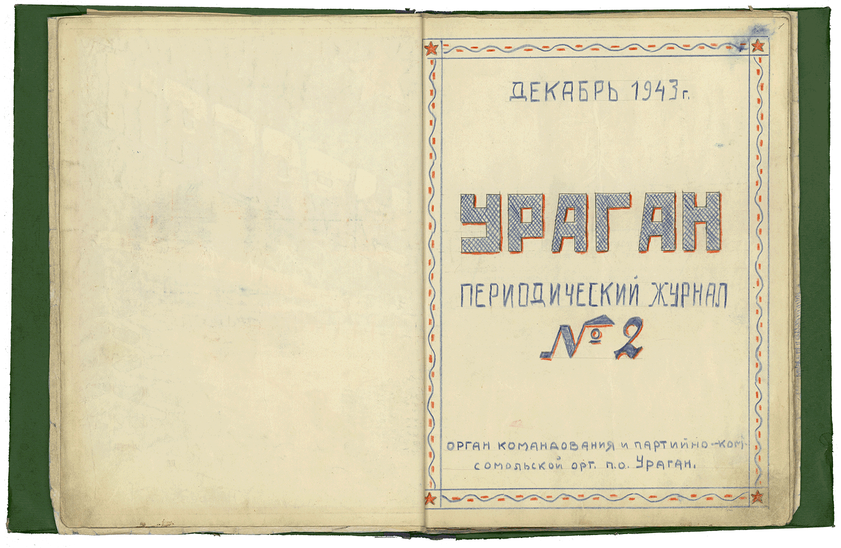 Handgeschriebene Zeitschrift „Uragan" (Sturm), Ausgabe Nr.2, Partisanenabteilung „Uragan", Gebiet Minsk, Dezember 1943