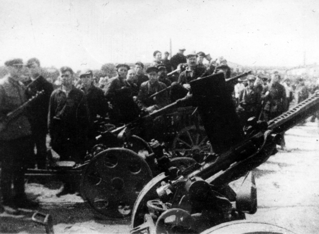 En el desfile guerrillero participaron unos 50 000 habitantes de la ciudad. La gente seguía a los vengadores del pueblo en columnas decoradas. Después de los trabajadores pasó un grupo de caballería de 900 jinetes.